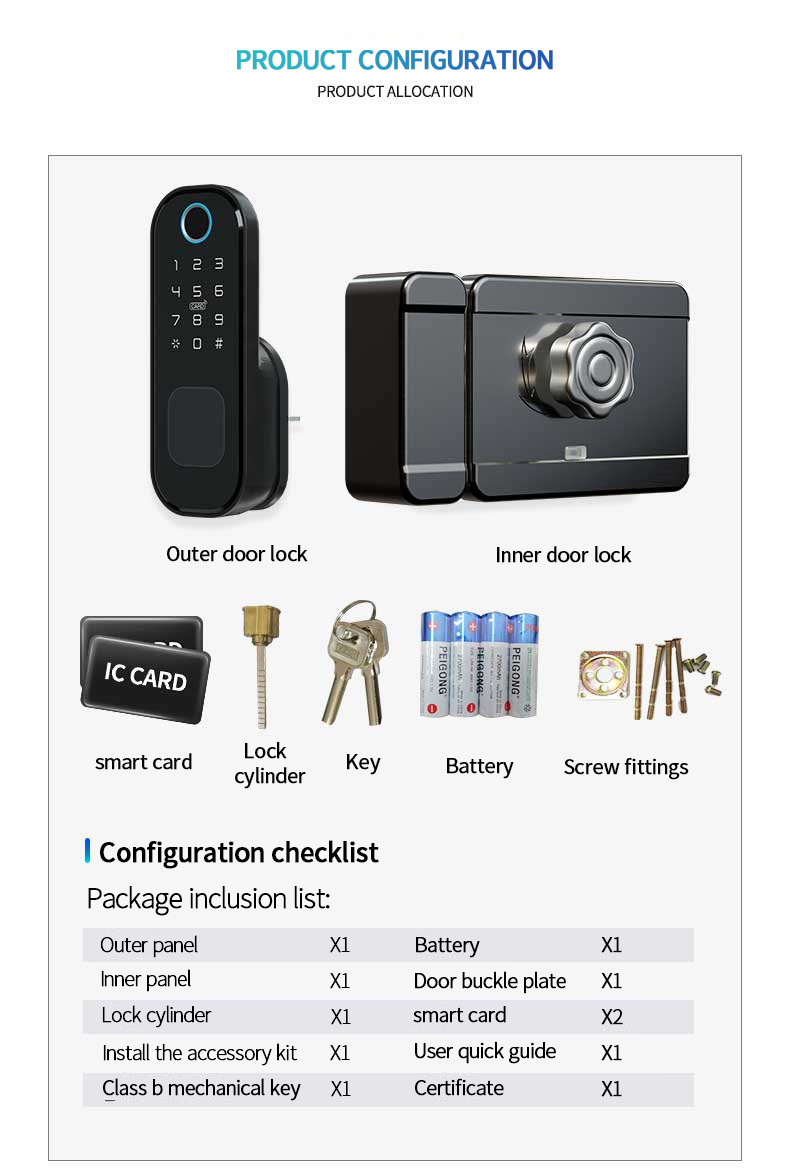 factory wifi APP biometric fingerprint waterproof keyless rfid rim door lock China made