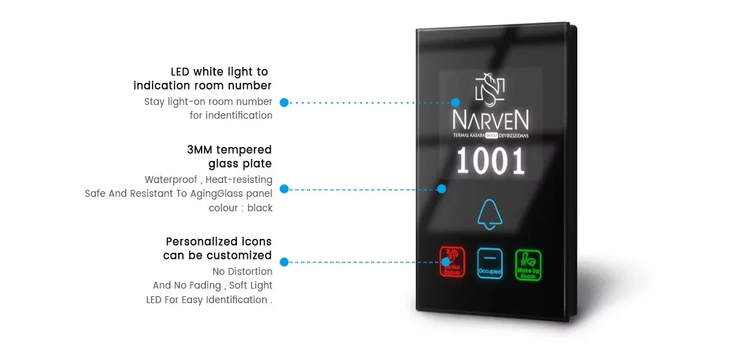 This combined unit features a dynamic digital doorplate and a smart doorbell. As a professional Doorbell and Electronic Doorplate Manufacturer China, we customize designs and software to match your hotel's brand identity.