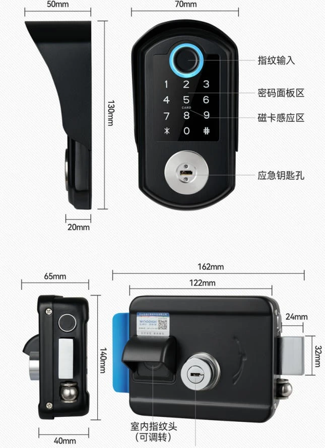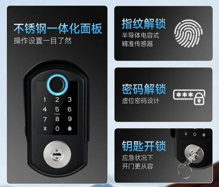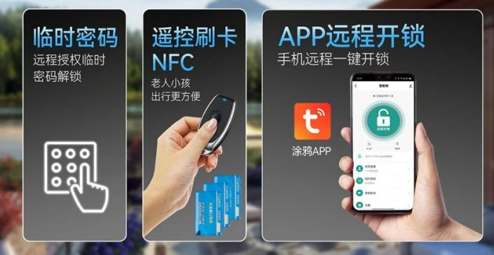 4.Unlocking:fingerprint,password,key, NFC,Tuya App, remote temporary password.
