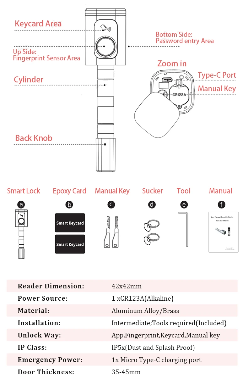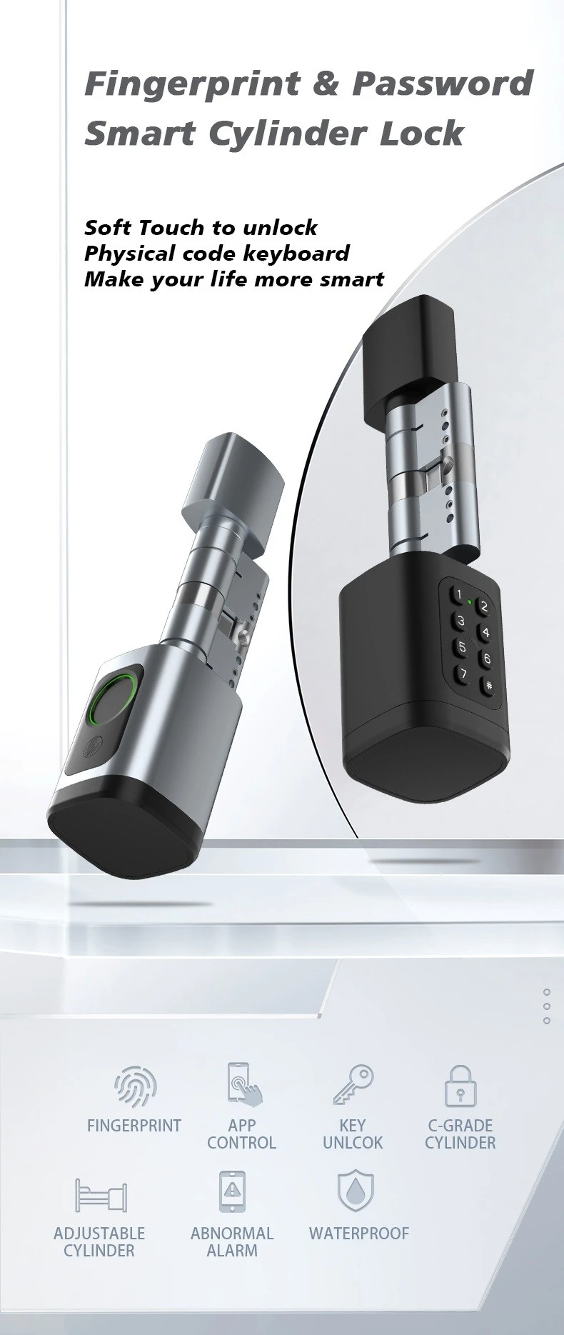 Hign Quality Smart Cylinder Lock Tuya APP Factory China | Fingerprint & Password Smart Cylinder Lock Soft Touch to Unlock Physical Code Keyboard Make Your Life More Smart.