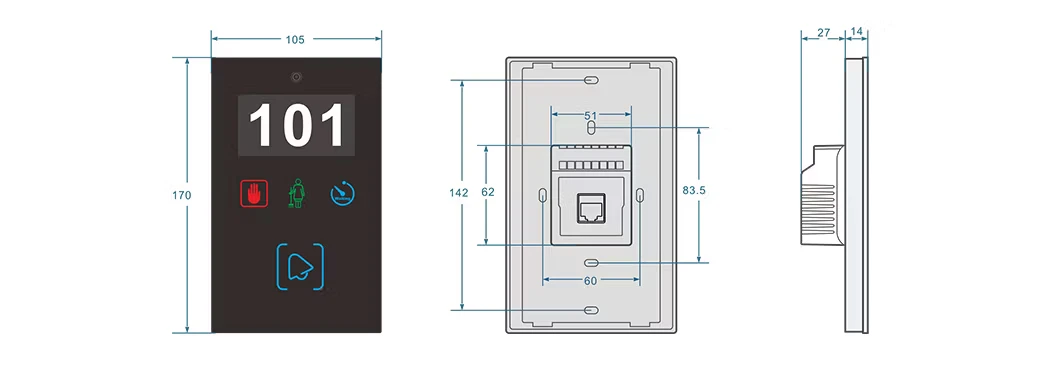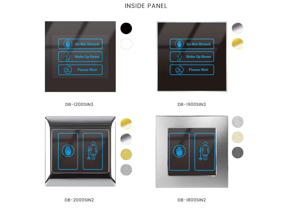 The font and icon content of the hotel door sign function keys and their corresponding LED backlight colors can be customized according to customers' special needs.