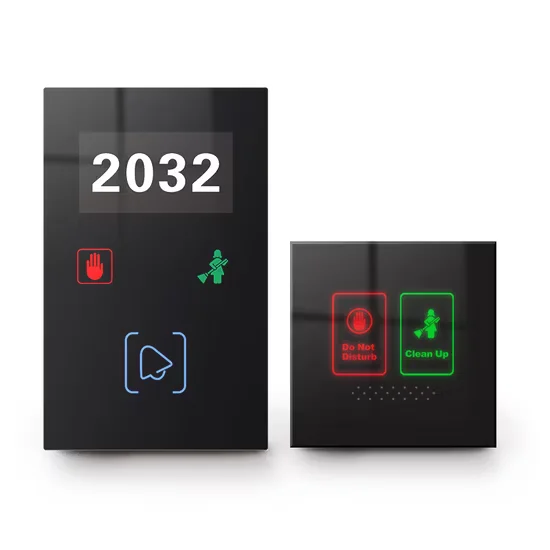 The innovative touchscreen doorbell systems for hotels can be designed and produced in a customer-specific way. In addition to a doorbell system, it also replaces the cardboard DND hangers. Guests can indicate via an indoor panel if they do not want to be disturbed or that the room can be cleaned. Smart Doorbell for Hotel Rooms Wholesale different models are available, with or without room number. Equipped with high-quality touchscreen system with LED background lighting. Staff immediately sees if the guest does not want to be disturbed or that the room can be cleaned.