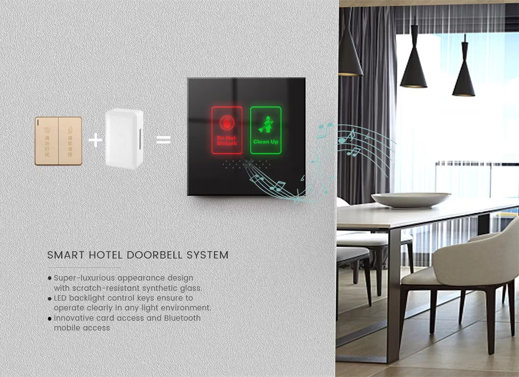 It says goodbye to the traditional mechanical button doorbell, adopts the international popular high sensitivity capacitive touch sensor technology, with non-common touch feeling. It enhances the hotel brand and guest experience, in line with the international hotel trend.